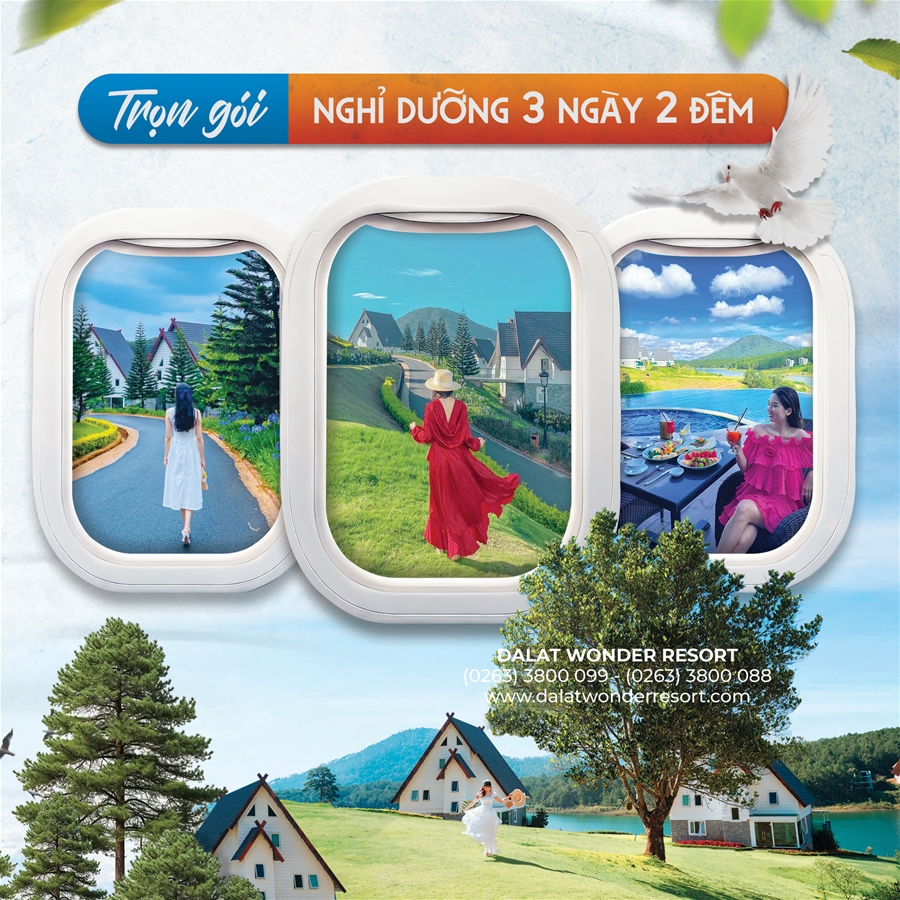 Chỉ với 4.650.000 VNĐ cho hai người, Dalat Wonder Resort trao bạn trọn vẹn 3 ngày 2 đêm để chữa lành, thư giãn và khám phá, bao gồm: