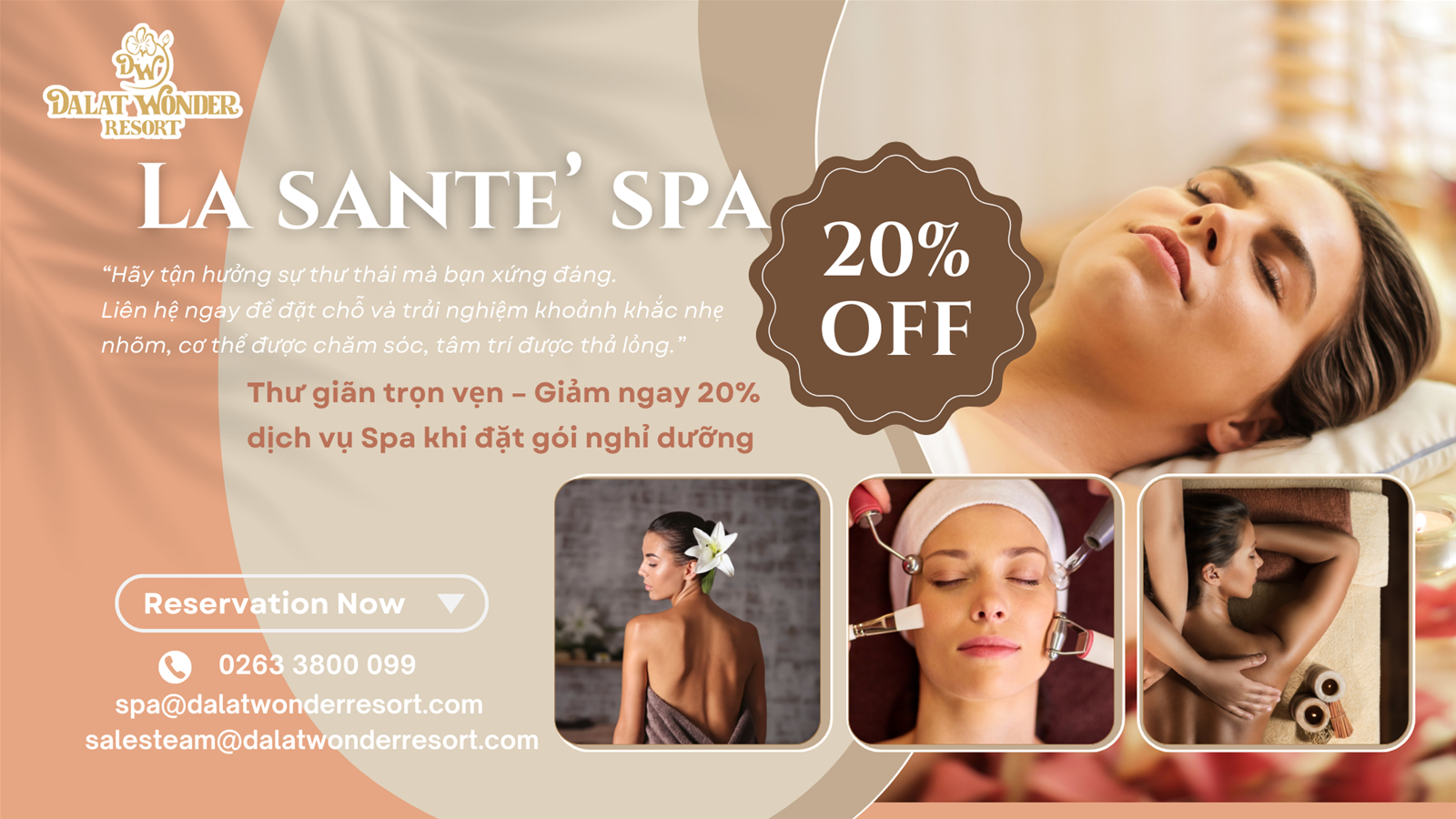 Ưu đãi giảm 20% dịch vụ Spa
