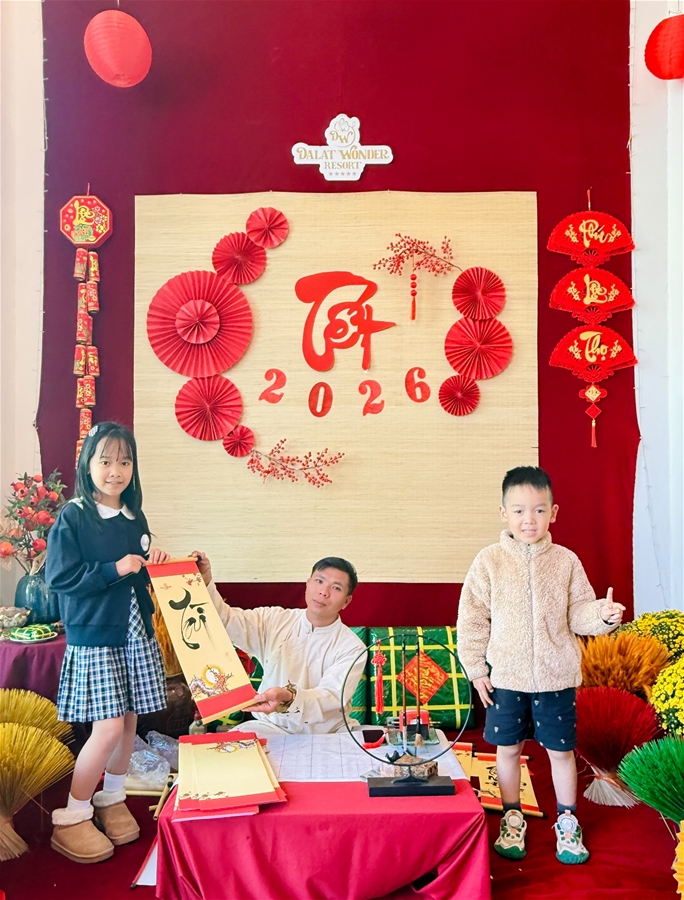 Hoạt động xin chữ đầu xuân tại Dalat Wonder Resort không chỉ góp phần tôn vinh giá trị văn hóa truyền thống, mà còn mang đến cho du khách cơ hội lưu giữ khoảnh khắc ý nghĩa bên gia đình trong kỳ nghỉ Tết tại Đà Lạt.